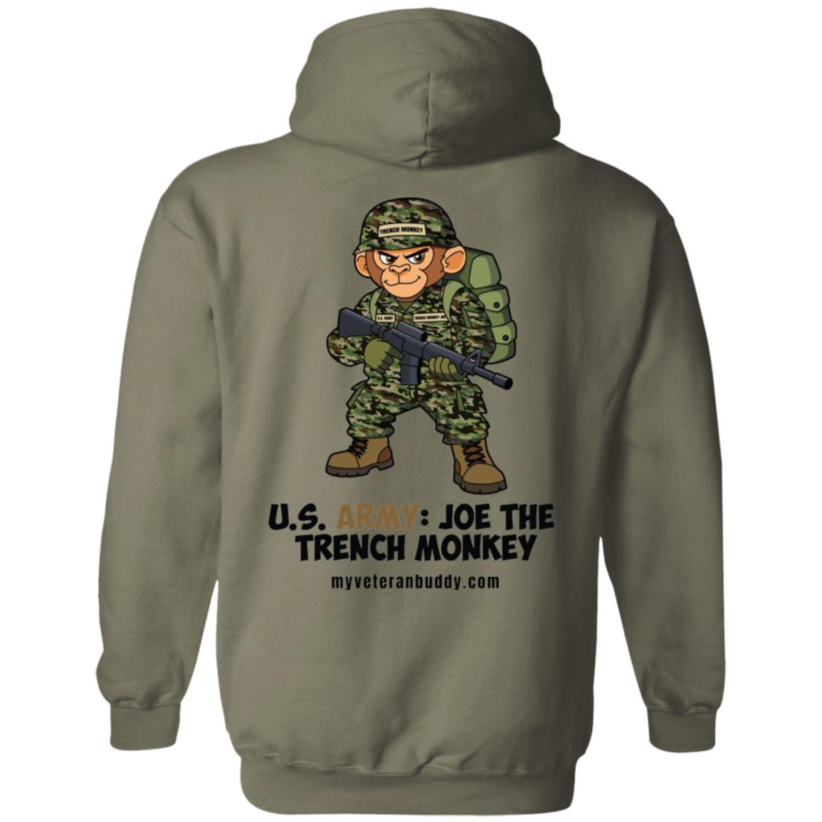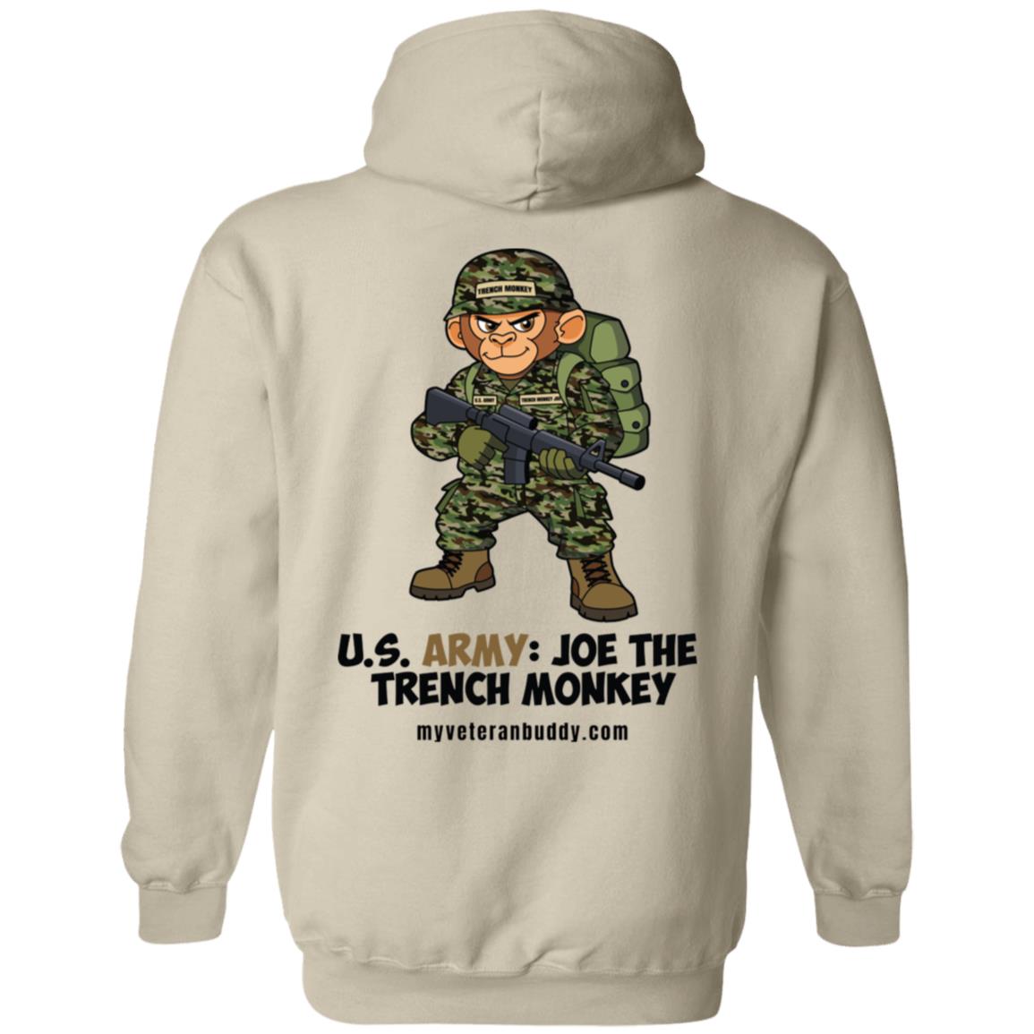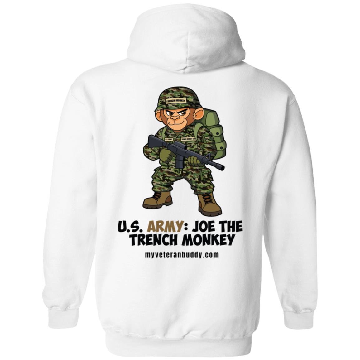 Support My Veteran Buddy by wearing a “Joe The Trench Monkey” U.S. Army veteran hoodie!